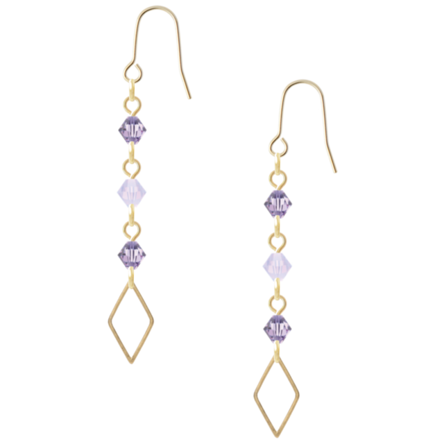 ダイヤパーツとバイオレットのスワロフスキーのシンプルなピアス♪