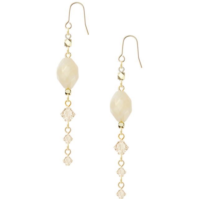 大粒のアイボリーカラーと繊細に揺れるクリアビーズが、